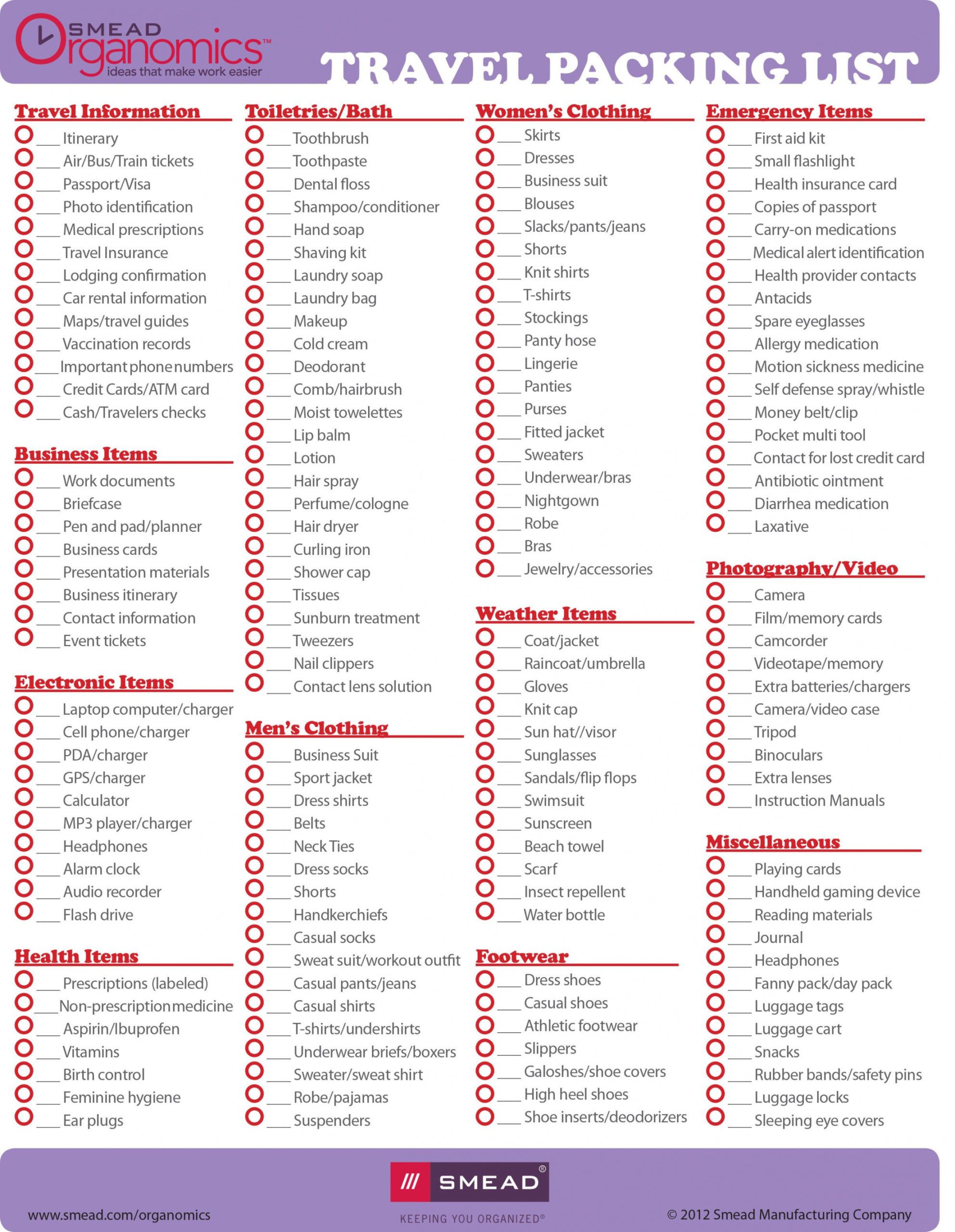 TravelSmith Printable Packing